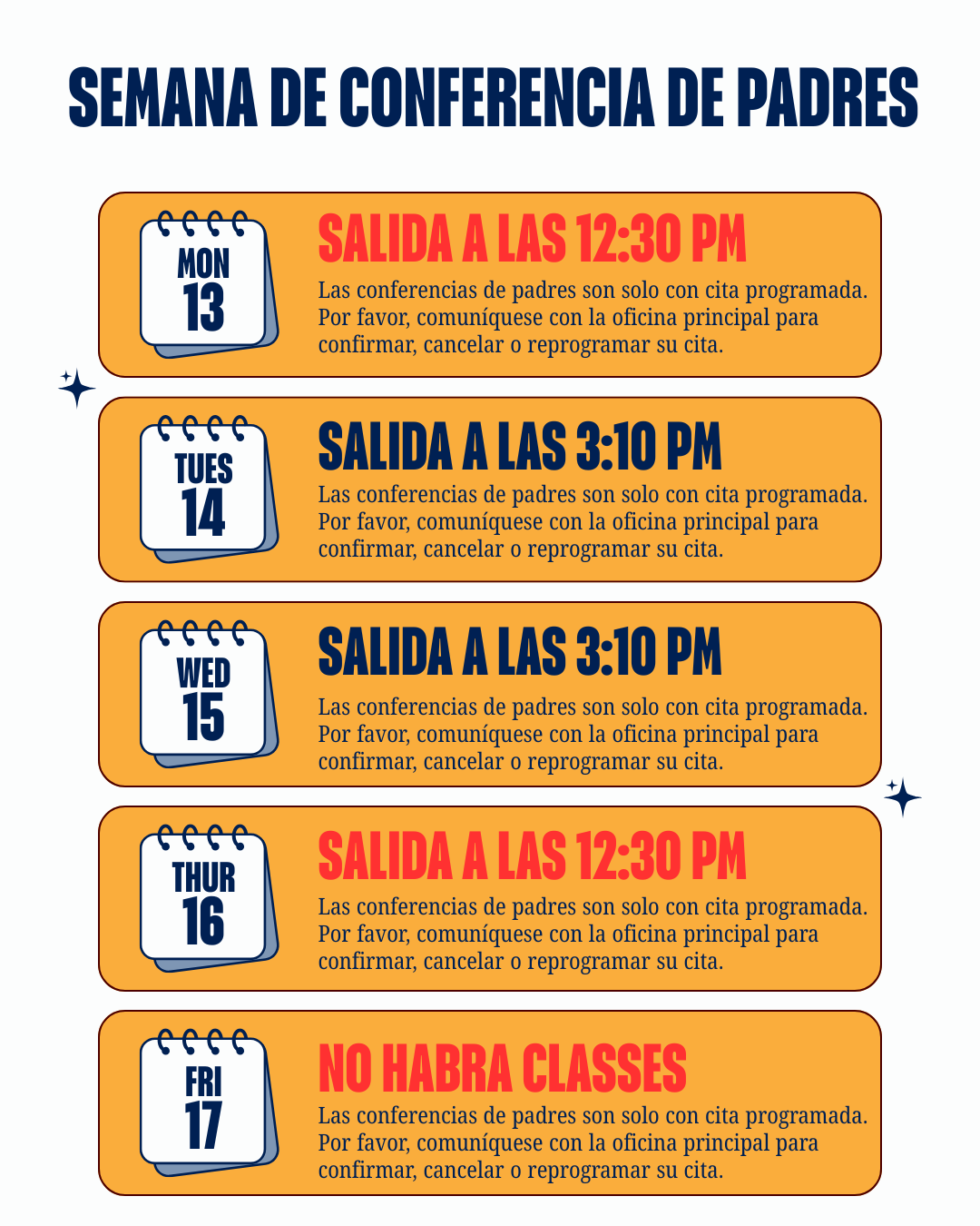 Esperamos ver a nuestras familias de BCCS en la semana de conferencias de padres que tendrĂ¡ lugar del 13 al 17 de octubre